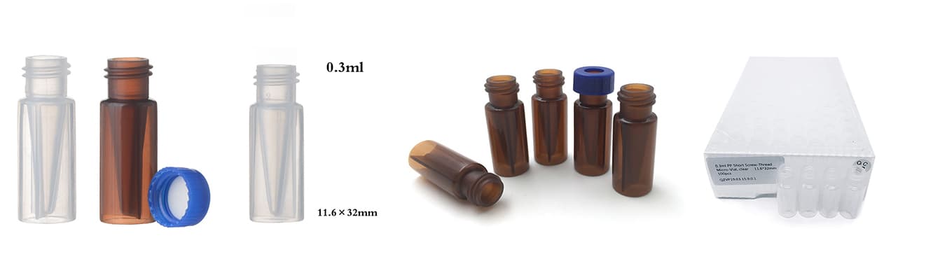 0.3ml PP 短螺旋微量透明进样瓶 11.6*32mm, 100个/盒 |
